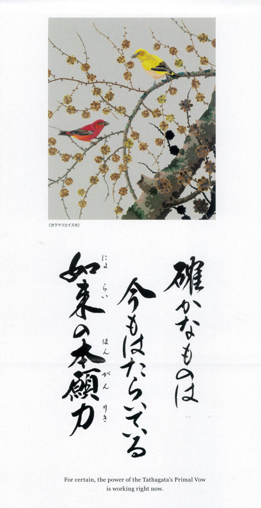 確かなものは、今もはたらいている如来の本願力と、力強く教えてくださっています。学生時代の「正信偈」のテキストのように、赤鉛筆でラインを引いておきたいお言葉です。